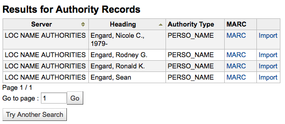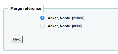 After clicking 'Merge' on the first result you will see that authority listed at the top of the results.