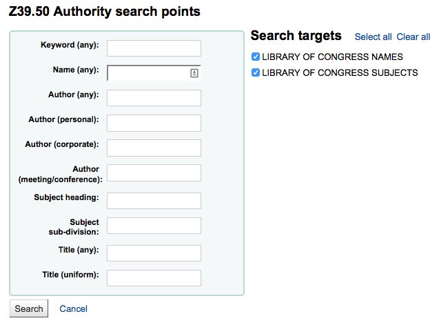 If you choose to enter a new authority from scratch, the form that appears will allow you to enter all of the necessary details regarding your authority record.