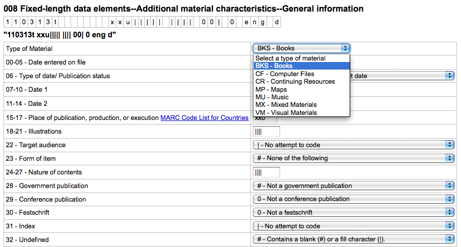Some fixed fields have editors that will change based on the material type you're cataloging (for example the 006 and the 008 fields)