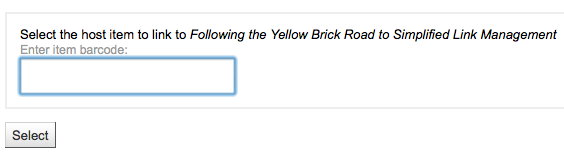 This will prompt you to enter the barcode for the item this record should be linked to.