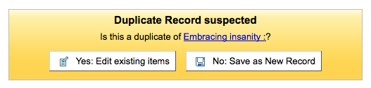 Choosing 'Save and edit items' will bring you to the add/edit item form after saving the bib record so that you can attach holdings