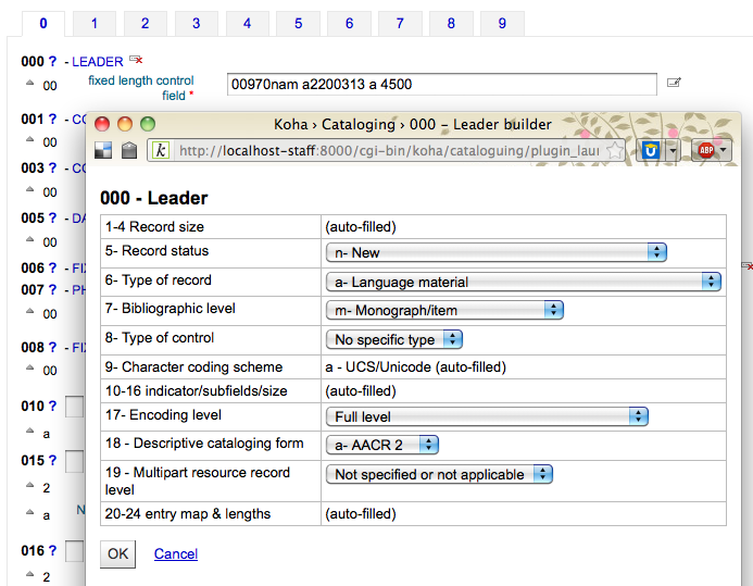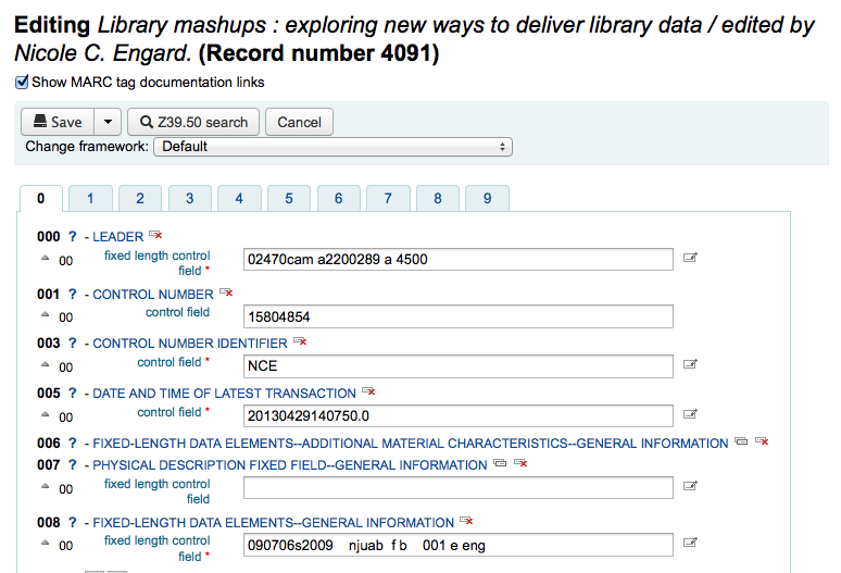 If you feel that this clutters the screen you can hide the question marks by unchecking the box next to the 'Show MARC tag documentation links' note found under 'Settings'