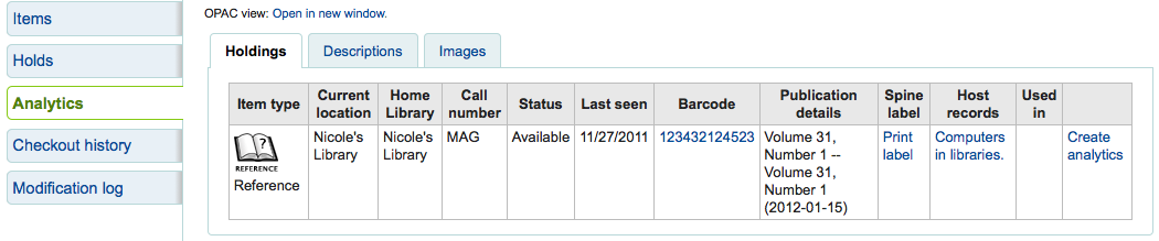 Libraries sometimes make journal articles and articles within monographs and serials accessible to library patrons through analytics cataloging. Analytics cataloging creates separate bibliographic records for these articles, chapters, sections, etc. found within a larger resource such as a book, an article within a journal, newspaper or serial. In analytics cataloging, although a separate bib record is created for the title, it is not physically separated from the host item. Learn more about Analytics in Chapter 13 of AACR2.
