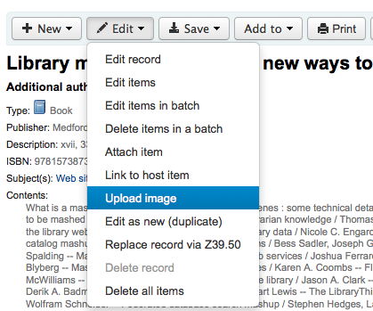 You can also use the edit menu to add your own custom cover image if you have either OPACLocalCoverImages and/or LocalCoverImages set to 'Display' by choosing 'Upload Image' from the menu.