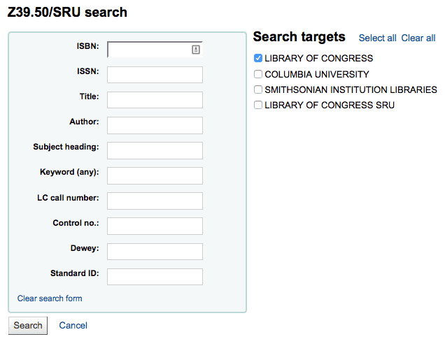 Once you choose that you will be brought to a Z39.50 search window to search other libraries for the record in question.