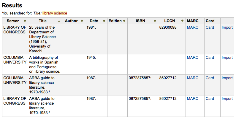 From the results you can view the MARC or Card view for the records or choose to Import them into Koha