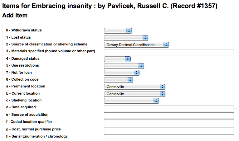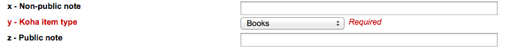 At the very least, if you plan on circulating the item, the following fields should be entered for new items: