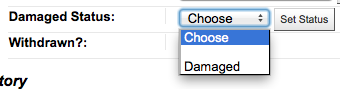 You can also mark an item as damaged by choosing a damaged status from the pull down and clicking the 'Set Status' button.