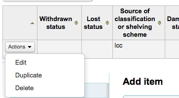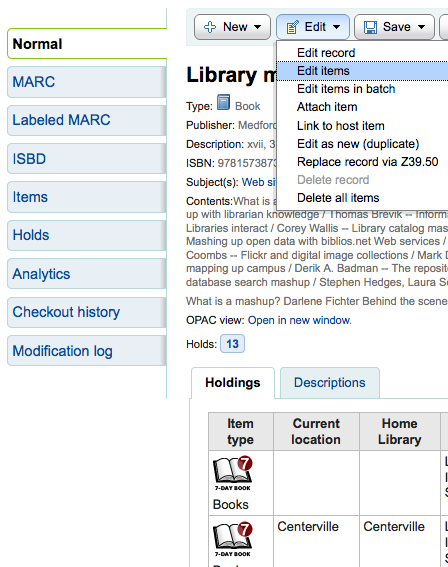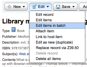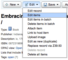 Clicking 'Edit' and 'Edit Items' from the bibliographic record