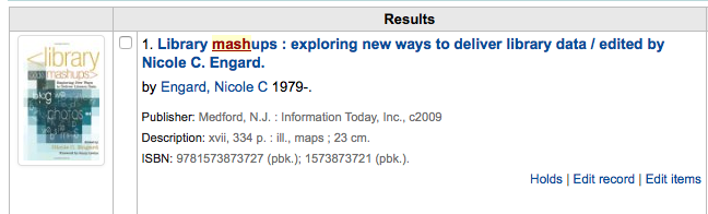 After saving a new bibliographic record, you will be redirected to a blank item record so that you can attach an item to the bibliographic record. You can also click 'Add/Edit Items' from the cataloging search results