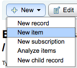 or you can add new item at any time by clicking 'New' on the bibliographic record and choosing 'New Item'